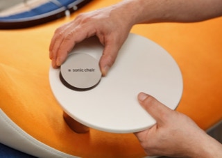 Ähnlich wie bei einem Musikinstrument wird die Form des sonic chair von der Akustik bestimmt: Das Sitzen im Klangzentrum unterstützt die Räumlichkeit der Aufnahme. Dabei werden die tiefen Frequenzen über eine Körperschallmembran auf den Rücken des Nutzers übertragen. Zusätzlich leitet ein hochwertiger Körperschallwandler den fühlbaren Klanganteil an einen den Hörer umschließenden Klangkörper. So verschmilzt der Mensch mit dem Klang, was den Effekt vergleichbar mit dem Erleben eines Live-Konzertes macht.